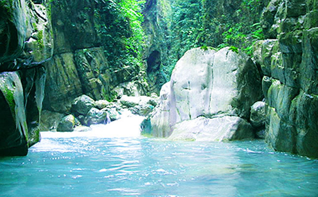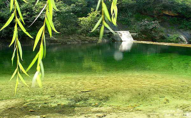 初到飛瀑潭,游人方以為已到了山谷盡頭,誰知“山窮水復疑無路,柳暗花明又一村”。就在飛瀑潭一側,有一條石雕穿云的登山梯道,巖石上刻有篆書“天梯”二字,沿天梯上行,步步高登,方知山外有山,天外有天,瀑外有瀑,潭外有潭。到了山頂,神潭風景區主要景區,神潭瀑和神潭以其雄奇的姿態呈現在游人面前。但見神潭瀑由十幾米高處下瀉,匯成方圓30米的神潭,碧綠的潭水清澈見底,游魚可數,一塵不染,景色迷人。 幽谷神潭風景區服務設施在門前生活區內,建有舒適的客房,設有小木屋,還可以享受燒烤野味,臨淵垂釣的樂趣。食宿都別有一番韻味。使游人度過一個終身難忘的美好假日。 |