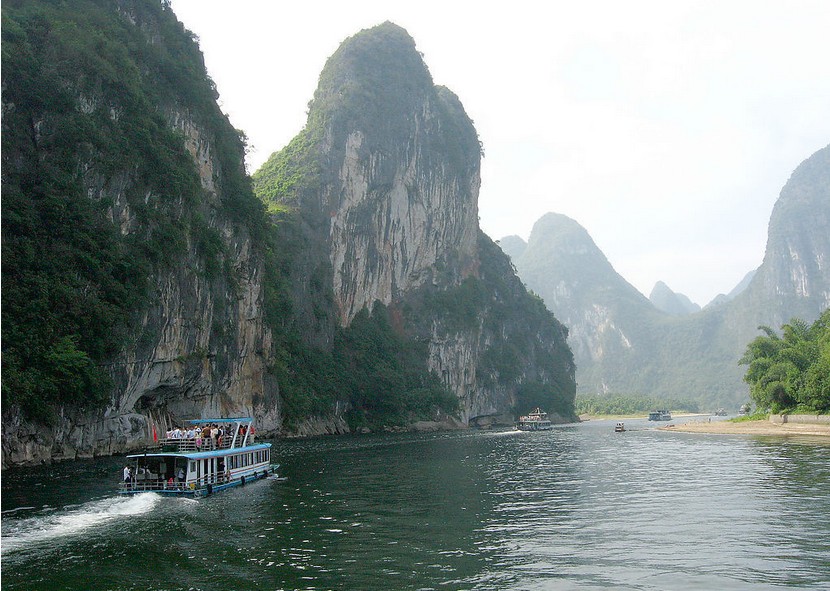 來廣西旅游之前做了很多攻略,知道以我等體力徒步漓江,與那些真正的暴走驢友是不能相提并論。如鞋城里冬冬小帥哥,竟能在一天之內,從蘇州的周莊走到上海朱家角,與神行太保戴宗也就是幾步之遙。回來后,單位一位美眉聽說我徒步了漓江,驚訝地張大了嘴巴,因為當年在桂林讀書的時候,她的同學從桂林徒步漓江,走了幾天幾夜一直走到陽朔。一聽就心虛了,仿佛李鬼遇李逵,不敢再提徒步二字。這么說吧,那些行走者是徒步中的真品,我等只能是贗品,而且還不是那種能以假亂真的贗品,是一打眼就能看出來低等贗品。所以說是徒步漓江,即使是漓江精華段,我們也沒有全部走下來,只是掐頭去尾,走了其中的一部分。這有點像電視里看到的,領導人在儀式上種植紀念樹,樹坑別人已經挖好,樹別人已經植好,領導只象征性地鏟幾下土,也成了種植紀念樹的報道。想想,這比喻也不恰當,我們的徒步雖然缺斤少兩,畢竟也是用自己的腳一天辛苦走下來,哪里是揚幾鏟土所能概括得了的。