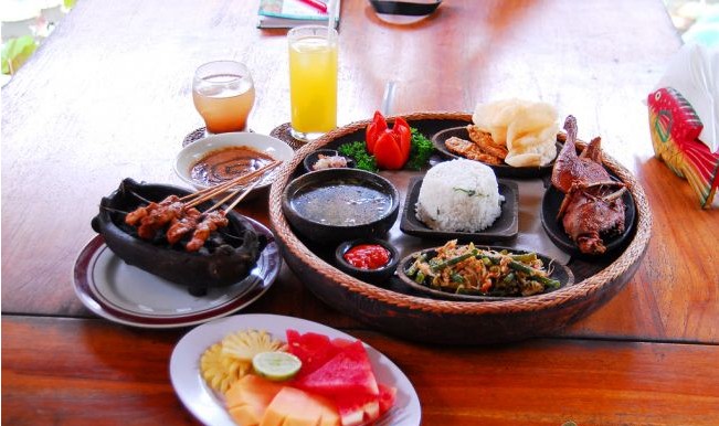 稻米是巴厘島人的主食,但與中國(guó)的做法不同,巴厘島人一般把米飯放在椰子殼中蒸熟,有一股淡淡的清香味,很是可口。說(shuō)道巴厘島的美食,就不得不提當(dāng)?shù)靥赜械目绝啠˙ebek Betutu)、烤乳豬(Babi Guling)以及那多式多樣的水果拼盤(pán)。而巴厘島餐飲的集中地最出名的就屬“庫(kù)塔海灘”,各種檔次、各種風(fēng)味的餐廳隨處可見(jiàn)。