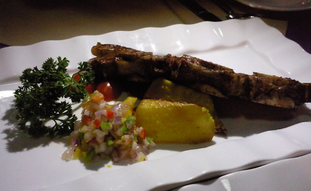 炭烤王中王牛扒:招牌炭烤王中王牛扒,不需要腌制,只是灑上點鹽,直接用炭火烤至七八成熟,外表烤得略有點焦,肉香味飄散開來,吃起來外酥內嫩,里面還保留著肉汁。阿根廷人對烤肉的吃法是,吃一口烤肉,再吃一口蔬菜,所以在每一份烤肉上來的時候,也會配上些新鮮的蔬菜沙拉,這樣吃起來不至于肥膩。
