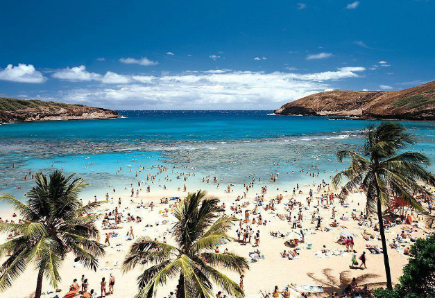7.威基基海灘:威基基海灘是夏威夷最出名的海灘,也是多數游人心目中最理想的夏威夷海灘。海灘東起鉆石山下的卡皮歐尼拉公園(Kapiolani Park),西至阿拉威(Ala Wai) 游艇碼頭,長達一英里,每日到這里的游客不計其數。海灘區的精華部分是從麗晶飯店到亞斯頓威基基海濱飯店之間的一段, 這里有細致潔白的沙灘、搖曳多姿的椰子樹以及寧靜開闊的水域,是一家老小假日休閑的理想地點。除了海灘,威基基還有眾多的景點可供參觀,包括威基基水族館(Waikiki Aquarium)和檀香山動物園(Honolulu Zoo)。日落時分,你還可以在威基基海灘步行街以及度假村內用餐、購物、跳舞、觀看現場表演。
