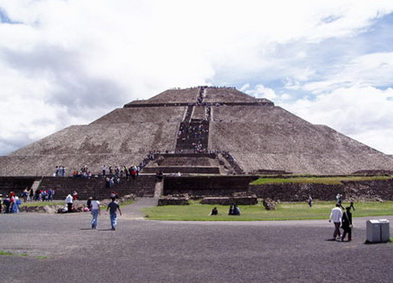 太陽月亮金字塔:1987年名列《世界遺產名錄》的特奧蒂瓦坎,太陽金字塔(Pirámide del Sol)和月亮金字塔(Pirámide de la Luna)是特奧蒂瓦坎(Teotihuacan)古城遺跡的代表性建筑。位于特奧蒂瓦坎亡靈大道東側的太陽金字塔,約建于公元2世紀,是世界第三大金字塔,也是特奧蒂瓦坎最大的建筑。太陽金字塔的方形塔基規模為225米×222米,5層塔身共高63米。這座體積達100萬立方米的龐大建筑,除雕刻著絢爛圖案的火山石外壁外,整個主體以250萬噸泥土和砂石堆砌。可惜的是,20世紀修復太陽金字塔時,建筑師萊奧波爾多·巴特雷斯在原有的4、5層之間加建了一層,并重修了金字塔的東、南、北三面外墻,一定程度上破環了太陽金字塔的最初面貌。