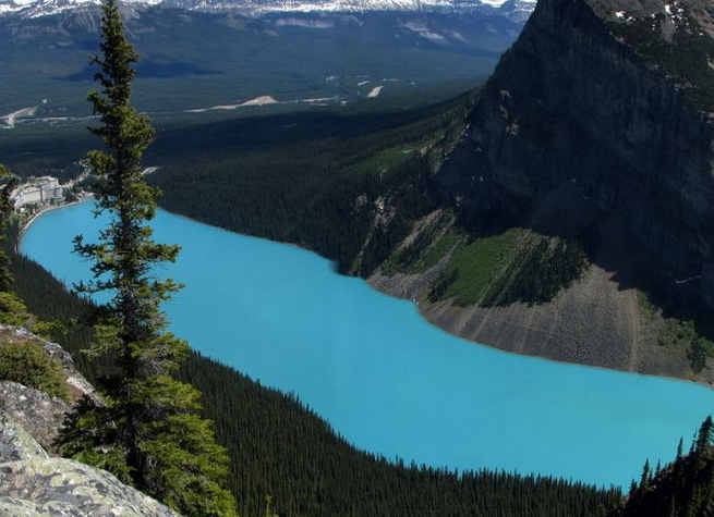 2.露易斯湖 :露易絲湖(Lake Louise)是班夫國(guó)家公園(Banff National Park)中最著名的景點(diǎn),得名于英國(guó)露易絲公主的美麗傳說(shuō)。公主不顧自己的皇室血統(tǒng),與平民羅恩相愛(ài),于是這對(duì)年輕情侶被維多利亞女王貶黜到遙遠(yuǎn)寒冷的加拿大,露易絲湖就是對(duì)這段凄美愛(ài)情的紀(jì)念。如今露易絲湖就仿佛這位美麗公主發(fā)簪上的耀眼明珠,鑲嵌在純凈的翠山、藍(lán)天和白云之中。一年四季湖的景色都不同,夏天的時(shí)候湖水是明亮的碧綠色,仿佛遺落在落基山脈中的翡翠,而冬天湖面結(jié)冰,與維多利亞山上的白雪渾然一體,宛如冰雪國(guó)度。