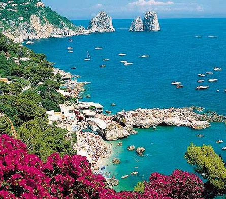 卡普里島:卡普里島是一個富有神話和歷史氣息的島嶼,位于那不勒斯灣。據說,演奏迷人的歌曲的汽笛聲會引誘水手至此,在這里,他們會喪生。羅馬皇帝提比略一直住在這里直到他在公元37年去世時。朱庇特別墅作為皇室住所,是島上最熱門的景點之一。卡普里島最有名的自然景點是藍洞,它是一個潮汐平穩時,人們可以乘船前往的濱海洞穴。