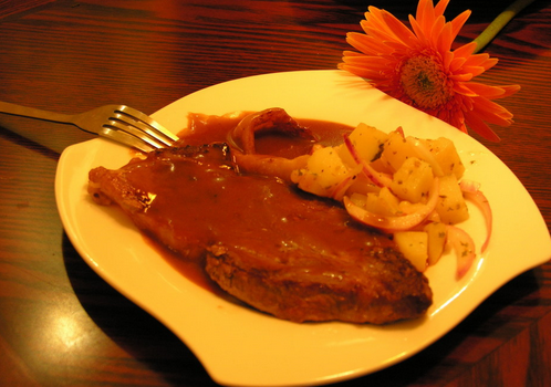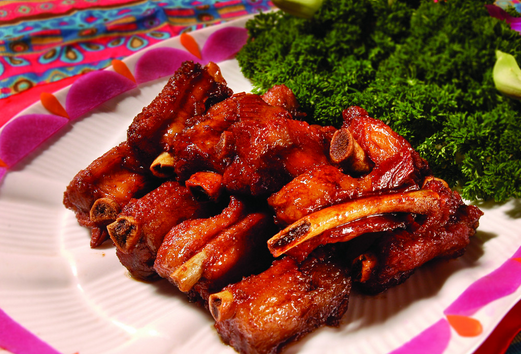 排骨:燉或烤豬排骨,配之以烤土豆,洋蔥片和青蒜汁。