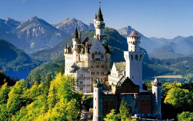 新天鵝堡:新天鵝城堡(Neuschwanstein Castle)是德國出鏡率最高的建筑,也是歐洲最熱門的旅游景點之一。這個童話般的城堡坐落在美麗的巴伐利亞阿爾卑斯山脈附近的菲森小鎮,是迪斯尼動畫《睡公主城堡》的原型。