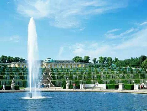 無憂宮:無憂宮的名字來自法文,法文愿意是無憂,所以就稱之為無憂宮。無憂宮位于波茨坦北部,周邊的園林十分別致,很多樹木都是當地特有的植被,花草也被修正的很有觀賞價值。園林是普魯士國王腓特烈二世(174 1757年)時期建造的,整個園林面積很大,大約290公頃,而且園林不是在平地上,整個是在丘陵上,故無憂宮還有人稱之為沙丘上的宮殿。