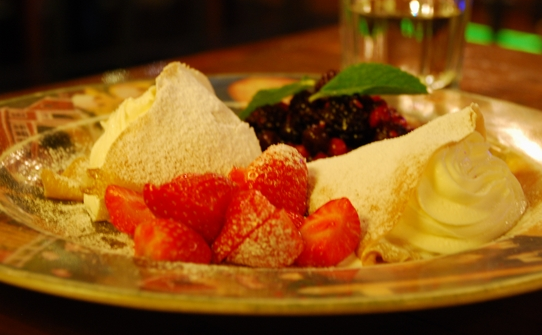 冰激凌煎餅:一道我飯后甜點,冰激凌煎餅,有加的草莓和桑果。非常可口.
