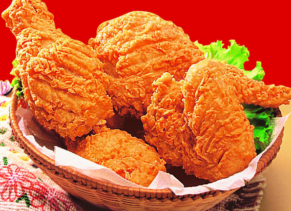 炸雞:炸雞是很多快餐店的招牌食品之一。金黃香脆的外皮,鮮嫩多汁的雞肉,還有香辣咸麻的味道,掀起了一股男女老幼吃炸雞的熱浪。一種油炸食品。
