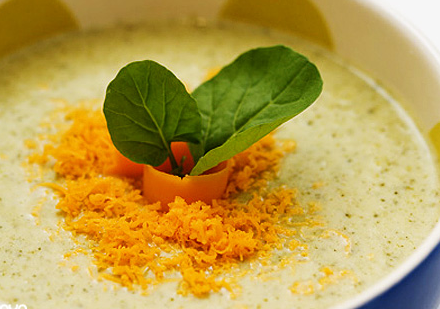 菠菜芝士湯:菠菜芝士湯香滑可口滋味豐,味美色鮮,含有豐富維生素 C、胡蘿卜素、蛋白質,以及鐵、鈣、磷等礦物質,菠菜芝士湯,能補鐵補鈣,促進生長發育、增強抗病能力,能維護正常視力和上皮細胞的健康,增加預防傳染病的能力,更能促進人體新陳代謝,增進身體健康。