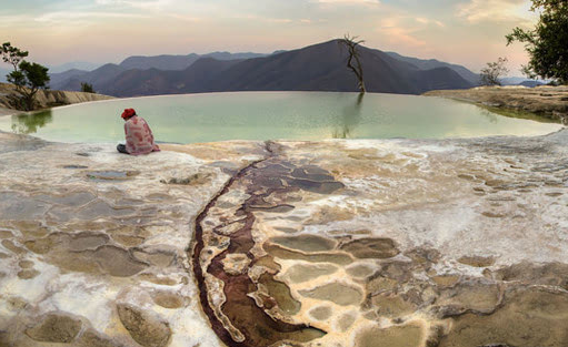 被凍住的瀑布:在瓦哈卡州米特拉山谷,瀑布被簇擁在繁茂的綠色植被中。如果來這兒,當地人肯定會向你推這一天然溫泉。除了拍照留念,你還能離這一自然奇景更近一些:穿好泳衣躍入水中,游累了還能在角落欣賞四周的絕美景色。