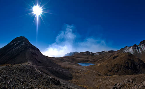 火山口的河流:在墨西哥州托盧卡死火山的火山口,兩座淡水池塘被熔巖穹丘隔開。據悉,這座火山距離托盧卡市)22公里,也是墨西哥高山攀巖的理想地。