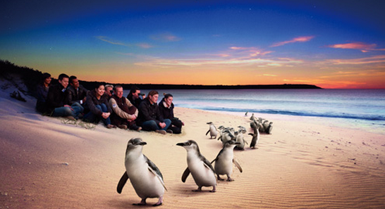 到自然公園一游的最精彩活動,顯然是坐在夏地沙灘前的露天觀看和等候從海中歸返的企鵝隊伍游行的一幕。