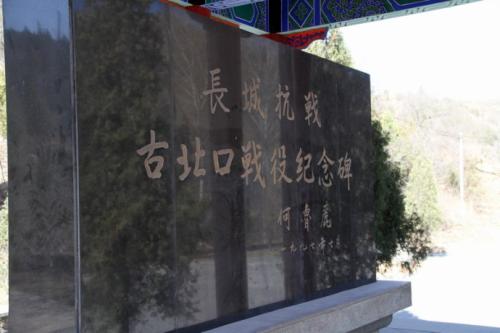 70多年前發(fā)生在這里的“長城抗戰(zhàn)古北口戰(zhàn)役”打響了北京抗日戰(zhàn)爭的第一槍,是長城抗戰(zhàn)中規(guī)模最大、最為慘烈的戰(zhàn)役。1933年1月日軍進犯山海關,3月占領承德,威逼北京,中國軍隊(國民黨十七軍二十五師)第一次進行較大規(guī)模的反擊。此次戰(zhàn)役持續(xù)四個多月,斃傷敵五千余人,自己也傷亡八九千人,終因敵我力量懸殊而失敗。至今在這里還能夠發(fā)掘出當時敵我雙方使用的武器殘留物,可見當時戰(zhàn)況的激烈。戰(zhàn)役結(jié)束后,當?shù)匕傩詹蝗炭谷諏⑹勘┦揭埃园l(fā)組織起來,把戰(zhàn)士尸骨背運至古北口南門外掩埋。一層尸體一層蘆席,整整埋了360多具,形成直徑18米,高10米的大墳,俗稱“肉丘墳”。1934年國民政府革命軍事委員會北平分會為紀念犧牲的抗日將士,設立“古北口保衛(wèi)戰(zhàn)陣亡烈士之墓”,1997年,時任民革中央主席何魯麗為古北口戰(zhàn)役紀念碑題寫碑名:“大好男兒光爭日月,精忠魂魄氣壯山河。”