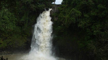 瀑布之上,有三座山峰聳立。瀑布之上山峰之間有一座石橋橫跨江上,名為太極橋,建于民國時期,工藝奇特,旁邊有座石亭,匾刻“觀瀑”二字,故名觀瀑亭。從亭上看過去,橋下激流奔涌,雪噴云飛,如銀河倒瀉,在陽光下常現出七色彩虹,蔚為奇觀。當地人士多用“龍洞垂簾”、“久雨不停”來描述瀑布的壯觀景象。