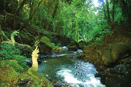 此外,傳說中釋迦牟尼巨腳下的“佛腳印”,地表水溫達50攝氏度的佛賜圣水,流金溢彩的銅鑄座佛,引來四方無數善男信女。這是一幅人類與自然和諧統一的詩情畫