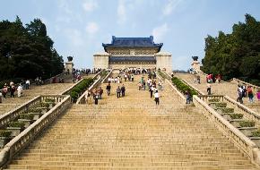 中山陵是中國(guó)近代偉大的政治家孫中山先生的陵墓。它坐北朝南,中山陵自1926年春動(dòng)工,至1929年夏建成。面積共8萬(wàn)余平方米。主要建筑有:牌坊、墓道、陵門(mén)、碑亭、祭堂和墓室等。從空中往下看,中山陵像一座平臥在綠絨毯上的“自由鐘”。山下中山先生銅像是鐘的尖頂,半月形廣場(chǎng)是鐘頂圓弧,而陵墓頂端墓室的穹隆頂,就像一顆溜圓的鐘擺錘。祭堂中有中山先生大理石坐像。像座東西四周有反映中山先生革命事跡的浮雕。祭堂東西護(hù)壁大理石刻著中山先生手書(shū)的遺著《建國(guó)大綱》。堂后有墓門(mén)二重,上有中山先手書(shū)“浩氣長(zhǎng)存”橫額。二重門(mén)為獨(dú)扇銅制,門(mén)上鐫有“孫中山先生之墓”石刻。進(jìn)門(mén)為圓形墓室,直徑18米,高11米。中央是長(zhǎng)形墓穴,上面是中山先生漢白玉臥像,下面安葬著孫中山先生的遺體。墓穴深5米,外用鋼筋混凝土密封。中山陵的建筑風(fēng)格中西合璧,鐘山的雄偉形勢(shì)與各個(gè)碑坊、門(mén)、碑亭、祭堂和墓室,通過(guò)大片綠地和寬廣的通天臺(tái)階,連成一個(gè)大的整體,顯得十分莊嚴(yán)雄偉,既有深刻的含意,又具紀(jì)念的功能,更有宏偉的氣勢(shì),設(shè)計(jì)非常成功,所以被譽(yù)為“中國(guó)近代建筑史上的第一陵”。 不到中山陵就不能算到過(guò)南京,它已成為南京旅游的標(biāo)志性景點(diǎn)。漫步中山陵確實(shí)需要好體力,一步一步地爬上392級(jí)階梯,最后的階梯越來(lái)越高,代表著革命到后面越來(lái)越艱難。而巍巍中山陵,從修建、竣工到聳立至今,它的歷程也充滿了艱辛。在周?chē)C穆的環(huán)境中,看具有民國(guó)特色的建筑,如果你是個(gè)歷史迷,一定會(huì)非常感興趣。