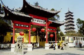 平山堂位于大明寺大雄寶殿西側的“仙人舊館”內,為北宋文學家歐陽修在揚州任太守時建,由平山堂、谷林堂、歐陽祠三部分構成,由南至北依次排列。今堂內還掛有“風流宛在”、“坐花載月”的匾額,堂北檐掛林肇元題“遠山來與此堂平”匾額。游人至此,思古之情油然而生。