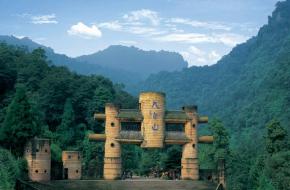 國家重點風景名勝區天臺山位于“文君故里”四川省邛崍市西南端,屬邛崍山脈,距成都110公里,距邛崍45公里,景區面積達192平方公里,主峰玉霄峰海拔1812米。天臺山為國內罕見的箱狀向斜山地,丹霞地貌變化豐富 ,山體由西南向東北傾斜成U字形,山勢亦由低到高,形成三級臺地,故有“天臺天臺,登天之臺”之說。景區氣候溫和,雨量充沛,年均氣溫16℃,森林覆蓋率達94.4%,動植物種類豐富,有珙桐、紅豆杉、銀杏等20余種國家保護的珍稀植物及大熊貓、紅腹角雉、大鯢等7種國家保護的珍稀動物,目前天臺山已納入四川省大熊貓棲息地世界自然遺產的申報范圍。 “山奇、石怪、水美、林幽”勢天臺山享譽中外的特色。“山有多高,水有多高”,水是天臺山之靈,金龍河自天臺山頂蜿蜒而下,形成長灘、疊溪、瀑布、海子……諸多景物借水幻化,向世人展示出一幅“九十里長河八百川,九千顆怪石兩千峰”的中國山水畫長卷。 天臺山具有深厚的歷史文化底蘊。早在遠古時代,天臺山即為古“邛”族生息繁衍之地;巴蜀開明時期,古蜀國國王鱉靈在此“登高祭天”;漢代,道家在此相山鑿洞,筑壇祭神;宋代,儒、佛、道“三教合流”,道觀、佛寺、官房多達108處,形成龐大的宗教山城。至今,天臺山還留存有“和尚衙門”、“和尚街”、“雷音寺”、“第一禪林”等眾多罕見的歷史文化遺跡。天臺山也是紅軍長征經過成都唯一戰斗河工作過的地方,成都市唯一的紅色旅游區,景區的紅軍長征邛崍紀念館為“四川省愛國主義教育基地”、“成都市愛國主義教育基地”。