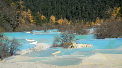 黃龍風景區以彩池、雪山、峽谷、森林“四絕”著稱于世。巨型地表鈣華坡谷,如一條金色巨龍,蜿蜒于原始林海和石山冰峰之間,其鈣華景觀不僅規模宏大,結構奇巧,色彩豐艷,環境原始,而且類型繁多齊全。鈣華洞穴,鈣華盆景等,一應俱全,是一座世所罕見的天然鈣化博物館。享有“世界奇觀”、“人間瑤池”之譽,被稱為“中國一絕”。