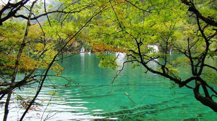進入黃龍景區,首先看到的是一組精巧別致、水質明麗的池群--迎賓池。池子大小不一,形狀奇特,色彩艷麗,錯落有效,四周山岳環峙,林木蔥蘢,山間野花競放,彩蝶飛舞。山間石徑曲折盤旋,點綴著觀景亭閣,倍添情趣。