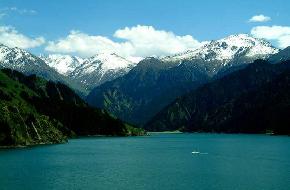巍巍天山,口銜天池,東西橫亙2500余公里,南北寬度250至350公里。西起中哈邊境,東至星星峽,在我國境內(nèi)綿延1700公里。整個天山山系由3列山脈組成,由北往南分別稱為北天山、中天山和南天山。 天池即位于北天山中段的博格多山北坡。 博格多山向西,山勢逐漸高峻。20多座海拔5000米以上的山峰將廣袤、深遠(yuǎn)的新疆奇麗、險峭的另一面打開。而回首東望,山勢逐漸低矮。突然,博格達峰以海拔5445米的挺拔身姿陡起于群山叢中。與另外兩座海拔分別為5287米和5213米的山峰構(gòu)成了著名的“雪海三峰”,成為新疆的象征。天池也是因為陡然升起的高度而顯得高峻異常。其實它的海拔為1943米,嚴(yán)格來說還不到“半山腰”。 茂密的森林、廣闊的草原、眾多的山系――天山作為新疆“生命的搖籃”,占新疆全區(qū)面積三分之一強(57萬多平方公里)。其山體由山地、山間盆地和山前平原三部分組成。
