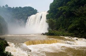 黃果樹瀑布位于37公里的鎮寧、關嶺布依族、苗族自治縣的交界處,海拔600-1500米,降雨量1300毫米,風光秀麗、奇峰疊起、浩浩蕩蕩的白水河,驟然間由斷崖上跌落,形成九級瀑布。