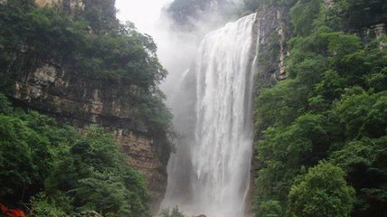 三峽大瀑布屬于曉峰旅游區(qū),原名白果樹瀑布,位于宜昌市夷陵區(qū)黃花鄉(xiāng)太山廟村,因峽谷叢林風光和天然瀑布群而遠近聞名。三峽大瀑布溪流全長5公里,沿途分布著30多道瀑布,溪水常年不斷。逆水而上,虎口瀑、一線瀑、珍珠瀑、丫瀑、連環(huán)瀑、五扇瀑等形態(tài)各異,其中最壯觀的是高102米、寬80米的三峽大瀑布,被譽為“中國十大名瀑”。而在峽谷盡頭的絕壁上,還有一尊高70多米的天然石佛——水袈裟大佛,一股山泉從大佛的額頭處流下,直沖谷底,為大佛披上了一襲圣潔的“水袈裟”,讓景區(qū)多了一層莊嚴的宗教氣息。
