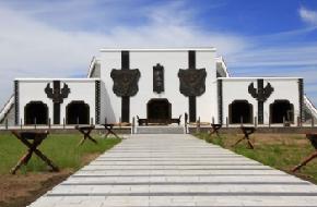 大汗行宮宮殿區(qū):占地30萬平方米,宮殿范圍內(nèi)由宏偉壯闊的宮門、代表民族信仰的長生天牌坊、戰(zhàn)場上的金戈鐵馬的還原場景、獨(dú)具特色的議事金帳、具有強(qiáng)烈宗教色彩并象征神在其位的敖包和集佛教、道教、薩滿教于一體的祭天臺等建筑共同構(gòu)成景區(qū)中軸線。宮墻左側(cè)為元朝的發(fā)展史,記載了蒙古民族從原始逐水草而居的游牧生活到成吉思汗開國和元朝建立并發(fā)展壯大創(chuàng)造一片盛世的景象。生動的刻畫出在這茫茫大草原中曾經(jīng)興旺發(fā)達(dá)雄霸百年的蒙古民族征服世界,并創(chuàng)立了世界上最大疆域版圖的元朝在其發(fā)展的過程中部分最具代表性的歷史場景。右側(cè)是由600個蒙古包組成的兵營,展示了蒙古特色軍帳文化。
