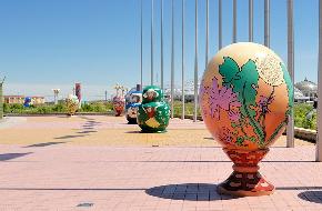 “套娃”是俄羅斯的一種民間木制玩具。它一般由七八個(gè)木娃,由大到小漸次套合在最大的一個(gè)體內(nèi)組成,可分可合,因而稱(chēng)為“套娃”。滿洲里俄羅斯套娃廣場(chǎng)是全國(guó)唯一的以俄羅斯傳統(tǒng)工藝品——套娃為主題的旅游休閑娛樂(lè)廣場(chǎng),集中體現(xiàn)了滿洲里中俄蒙三國(guó)交界地域特色和中俄蒙三國(guó)風(fēng)情交融的特點(diǎn)。廣場(chǎng)規(guī)劃面積54萬(wàn)平方米,主題廣場(chǎng)面積6萬(wàn)平方米,主體建筑是一個(gè)高30米的大套娃,建筑面積3200平方米,是目前世界上最大的套娃。主體套娃內(nèi)部為俄式餐廳和演藝大廳。套娃外部彩繪由代表著中俄蒙三國(guó)的美麗女孩組成,主體套娃周?chē)?個(gè)功能性套娃、200個(gè)代表全世界不同國(guó)家和地區(qū)的小套娃和30個(gè)色彩繽紛的俄羅斯復(fù)活節(jié)彩蛋。在廣場(chǎng)音樂(lè)噴泉的周?chē)€有代表中國(guó)傳統(tǒng)文化的十二生肖和西方占星文化的十二星座。夜色中,在近千盞彩燈的映射下,廣場(chǎng)上流光溢彩,仿佛是一個(gè)五彩繽紛的童話世界。俄羅斯套娃廣場(chǎng)將中俄蒙三國(guó)風(fēng)情和東西方文化完美的融合在一起,是集旅游觀光和趣味性、娛樂(lè)性為一體的滿洲里標(biāo)志性旅游景區(qū)。