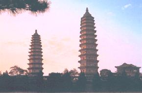 三晉名剎雙塔寺,位于太原市城區(qū)東南方向,距市中心四公里左右的郝莊村南之向山腳畔。這里,綠樹紅墻,寶塔梵殿,龕閣玲瓏,碑碣櫛比,花卉溢香,松柏凝翠,肅穆幽靜,古香古色。 雙塔寺的建筑方位,一反我國千百年來寺院建筑坐北朝南的傳統(tǒng)習(xí)慣,因地勢而拓建,居高臨下,坐南朝北。可謂背擁太行群峰,面俯汾水一帶。身臨其境,憑著古老的塔身,可廣瞰古城太原之全貌,晉中盆地之沃野千疇。雙塔寺始建于明代萬歷中葉,大約在萬歷二十五年至三十年之間(公元1597——1602年),距今 38O余年。初創(chuàng)之時,還不是我們今天看到的這所寺院,也沒有達到現(xiàn)在這樣的規(guī)模。那時,僅建了一座補輔太原“文運”不足的文峰塔,取名“宣文塔”,即如今偏于東南隅的那座舊塔。至于那緊靠塔而建的幾間簡陋寺舍,而今早已蕩然無存。當(dāng)時,寺名也不叫“永祚寺”,而是叫做“永明寺”。關(guān)于“永明寺”和“宣文塔”的起建原因,明萬歷本《山西通志》和萬歷本《太原府志》都曾作過明確的記載。