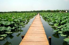 占地2000多畝,水域面積1560畝的荷花大觀園內(nèi),栽植 白洋淀鴛鴦島著366種荷花,品種多而美,景色雅而奇,大觀園內(nèi)有五區(qū)(迎賓區(qū)、服務(wù)區(qū)、餐飲區(qū)、采蓮區(qū)、觀景區(qū))、四園(精品荷園、靜心園、垂釣園、民俗園)、三港(泊船港、觀魚港、休閑港)、二灘(沙灘浴場(chǎng)、休閑灘)、一山(觀景山)。園內(nèi)有十里環(huán)園路、百頃荷花塘、千丈賞花橋、萬米船航道。2003年7月,第十七屆全國(guó)荷花展在白洋淀荷花大觀園園成功舉辦。