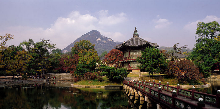景福宮】(約60分鐘)興建于公元1395年的景福宮,內保存有朝鮮時代的代表建筑—慶會樓以及香遠亭荷塘,勤政殿的月臺和塑像均是朝鮮時代雕刻藝術的結晶。