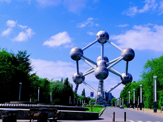 原子球塔:原子球塔位于布魯塞爾北郊,是這座城市的著名地標之一。這座精致新穎的時空模型是1958年世界博覽會的紀念建筑物,將α鐵的正方體晶體結構放大了1650億倍,包括9個直徑18米的球體,之間由鋼管連接,最高處高達102米。游客可以進入其中3個球體,頂部的球體是觀賞布魯塞爾全景的好地方。?