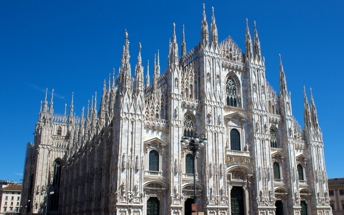 米蘭大教堂:米蘭大教堂是意大利最著名的天主教堂,又稱“杜莫主教堂”,規模居世界第二。大教堂不僅是米蘭的象征,也是米蘭的中心。教堂的特點在它的外形——尖拱、壁柱、花窗欞。教堂外部共有135個尖塔,像濃密的塔林刺向天空,在每個塔尖上都有一座神的雕像,加上教堂內部的雕像裝飾,共有6000多個雕像,是世界上雕像最多的哥特式教堂。登上大教堂的屋頂平臺,可以看到米蘭市中心的3條環形大道和其間密如蛛網的街道。拿破侖曾于1805年在米蘭大教堂舉行加冕儀式。