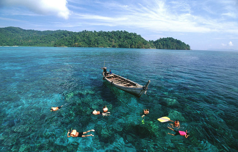 皇帝島,島上不僅有優(yōu)美完整的天然熱帶島嶼風(fēng)光,珊瑚礁的海岸景色同樣讓人難忘。由于開發(fā)較晚,到此的游客數(shù)量比較少,與喧鬧的普吉島相較,這里沙灘的環(huán)境格外清幽,附近只有零星泳客、滑浪發(fā)燒友,及耳畔傳來的浪濤拍岸聲,儼然一副“世外桃源”的美好景象。