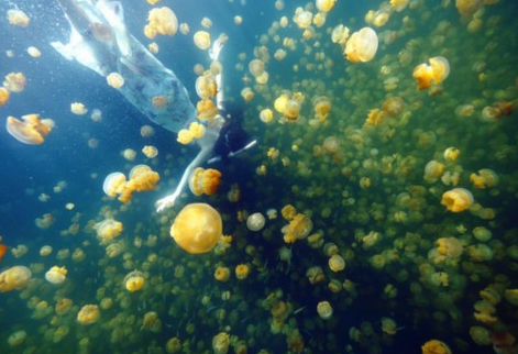 據北京旅行社了解, 水母湖是帕勞最具特色的景觀之一。在數萬年前,水母湖曾是海的一部分,由于地殼運動,周圍的海床升高,逐漸將它與外海隔絕,形成了一個看似普通的內陸咸水湖。其不普通在于,湖中大多數海洋生物都隨著養分的消耗而消亡,只剩下了一種低等的、靠少量微生物就可以生存的海洋生物--水母。由于天敵們的消失,這些水母“遺失”了祖先用以防衛自身的武器--身體內的毒素。這樣,帕勞水母湖擁有了世界上獨一無二的無毒水母。