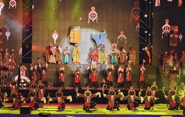 上圖為節慶活動開幕式上,文藝工作者表演大型歌舞《珠峰贊歌》。