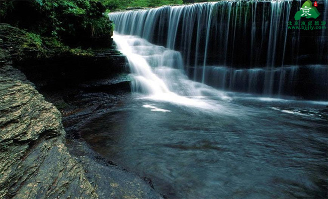 京都第一瀑位于北京密云縣石城鄉柳棵峪內,距北京103公里,黑龍潭北3公里,是由云蒙山泉水匯集而成,落差62.5米,坡度85度。是京郊流水量最大的瀑布。走進峽谷,未見瀑而先聞其聲。水從懸崖直瀉而下,云霧彌漫。遠眺,如玉柱擎天,雄偉壯觀。近看,銀花四濺,猶如白霧向空中噴涌。陽光照射,呈現出七彩虹,旖旎如畫,形成斑駁陸離的顏色。瀑下潭大而奇,深不可測。文人墨客詠詩贊嘆:“云蒙瀑鄉繡色錦,飛流直下雙白尺,京華瀑魁眾嘆服,嫦娥觀止不歸宮。”