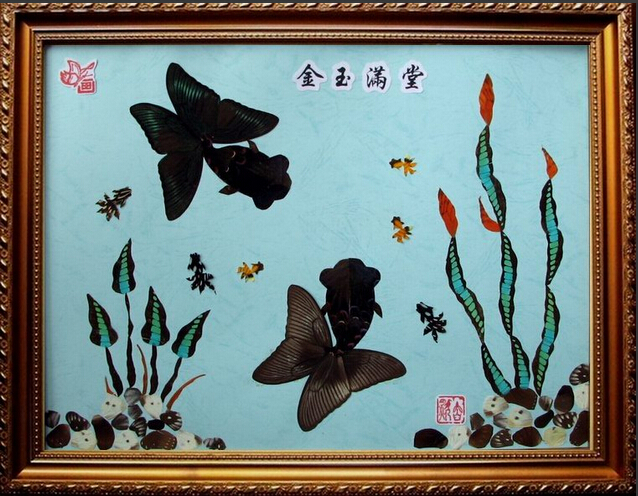 首先呢先來看一看這里美麗的蝴蝶蝶翅畫,蝴蝶蝶翅畫是以蝴蝶的翅膀為原材料,經過多種不同的程序,進行特殊的手工藝技術,將蝴蝶翅粘貼成油畫、國畫、水粉畫等效果的手工藝圖畫,就能夠形成美麗的蝴蝶蝶翅畫了。其中,一般都是要經過展翅,防腐,干燥等之前的準備工作,然后再粘貼。現在,這種工藝畫的類別一般有抽象,寫真,立體等的蝶翅畫。怎樣,是不是很美呢。