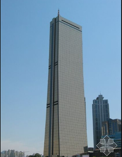 『大韓生命63大廈』是韓國最高的建筑物,『63大廈』顧名思義,就是它有63層樓,地面上60層、地下3層,共63層。 大樓的外觀,全部都是用雙重反射的玻璃,所以在晴空的艷陽下,大樓因?yàn)殛柟獾恼凵湫纬山鹕拇髲B,燦爛奪目,成為漢城的地標(biāo)。