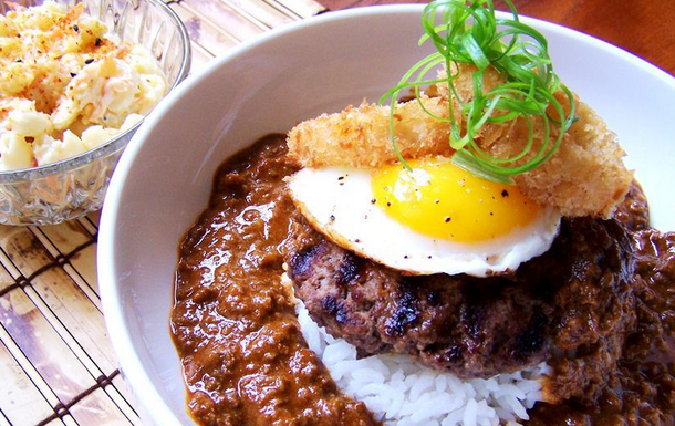 夏威夷式米飯漢堡: 夏威夷式米飯漢堡大胃口的人可以嘗試夏威夷式米飯漢堡(loco moco),這是將漢堡肉餅和雞蛋覆蓋在米飯上,再澆上鹵汁。全島各處都提供loco moco,但據(jù)說(shuō)這個(gè)名字原創(chuàng)于位于夏威夷大島希洛的Café 100。